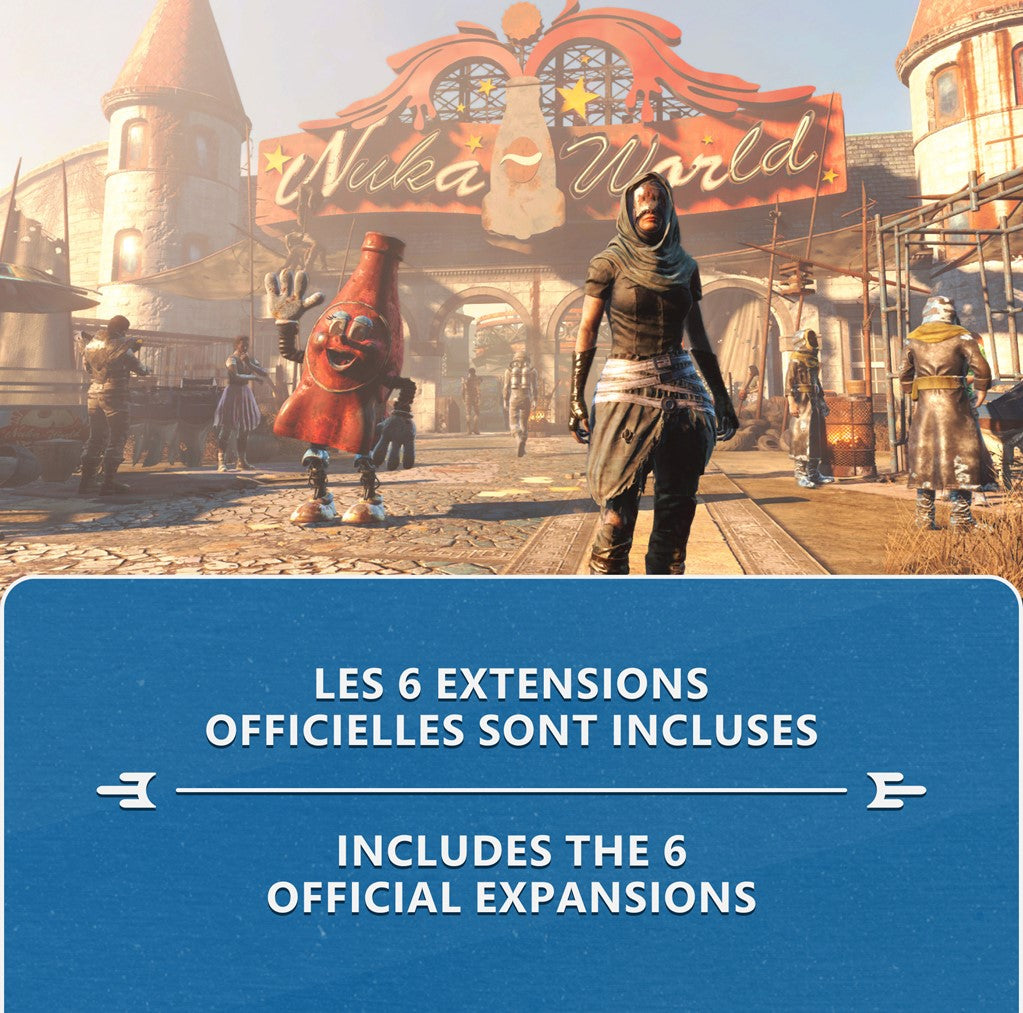- Includes the full base game and the 6 official expansions: Automatron, Wasteland Workshop, Far Harbor, Contraptions Workshop, Vault-Tec Workshop, and Nuka-World.